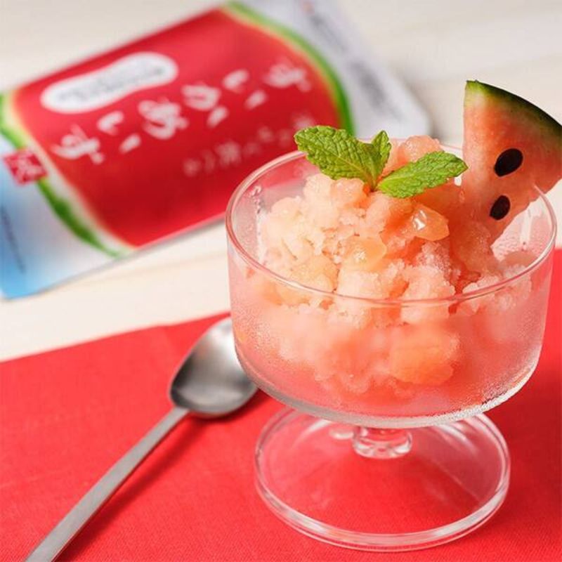 A frozen dessert that tastes as if a fully ripe watermelon has been frozen as is, juicy and refreshing. Can be stored at room temperature, and you can easily enjoy a cool summer flavor just by freezing it in the freezer when you want to eat it.