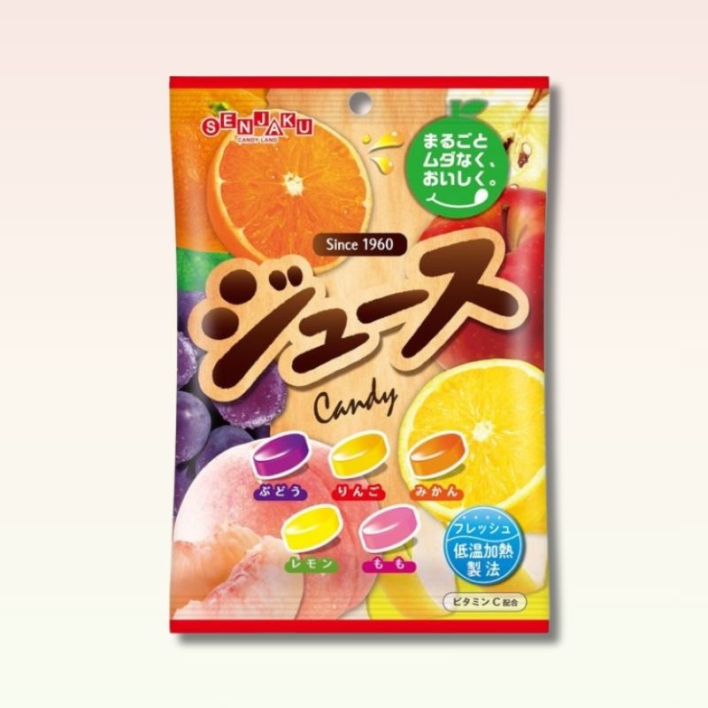 "Juice Candy" is a candy that lets you enjoy the rich fruit flavor as if real juice has been solidified. The juicy aroma that spreads the moment you put it in your mouth and the fresh sweet and sour taste give you the sensation of drinking cold juice.