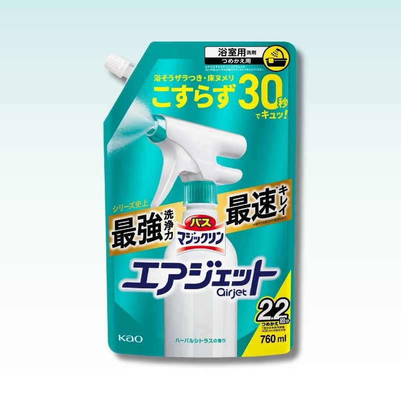 連射ミストが軽く薄くムラなく広がる!浴そう四隅のガンコなヌルつきまでこすらず30秒で速効キュッ。