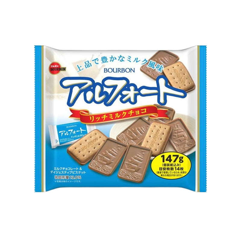 〈リッチミルク〉小麦粉(国内製造)、砂糖、植物油脂、全粉乳、ショートニング、カカオマス、小麦全粒粉、小麦ふすま、ココアバター、キャラメル粉末(乳成分を含む)、食塩、脱脂小麦胚芽/膨脹剤、乳化剤(大豆由来)、香料(乳由来)