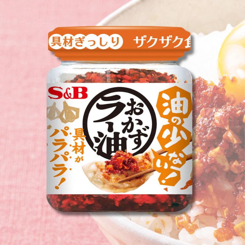 赤唐辛子(中国)、コーン油、ごま油、フライドガーリック、砂糖、オニオンパウダー、ショートニング(なたね油、パーム油、パーム核油)、ラージャン(赤唐辛子、食塩、米)、粉末醤油、アーモンド、食塩、すりごま、フライドオニオン、酵母エキスパウダー/調味料(アミノ酸等)、カラメル色素、酸化防止剤(V.E)、(一部に小麦・アーモンド・ごま・大豆を含む)