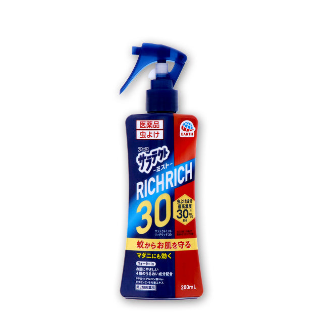 肌から10~15cm離して、適量を肌の露出面及び履物やズボンの裾等ににまんべんなくスプレーする。顔・首筋には、適量を手のひらに一度スプレーしてから肌に塗布する。