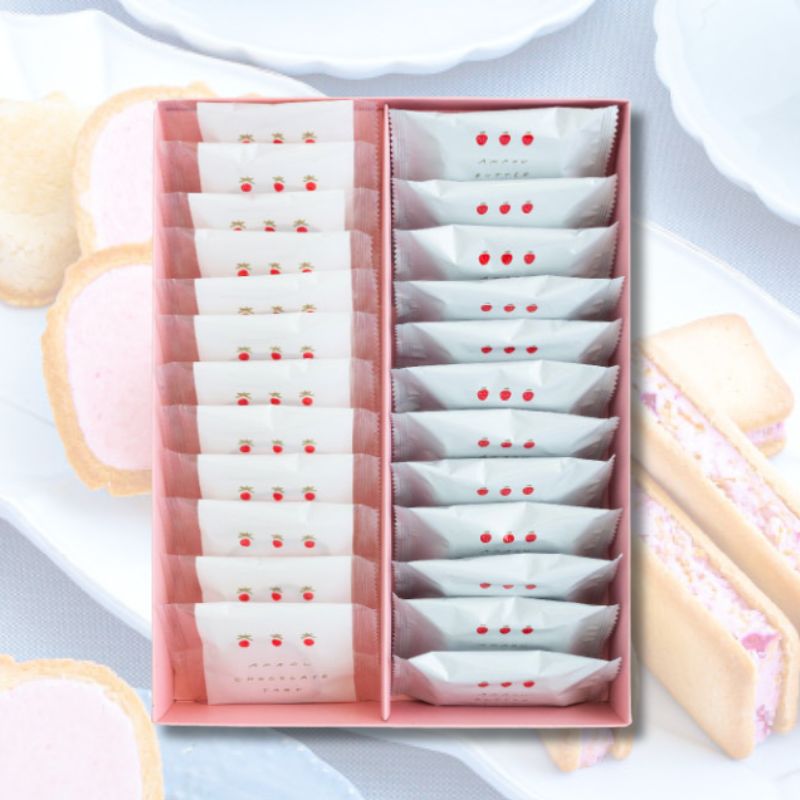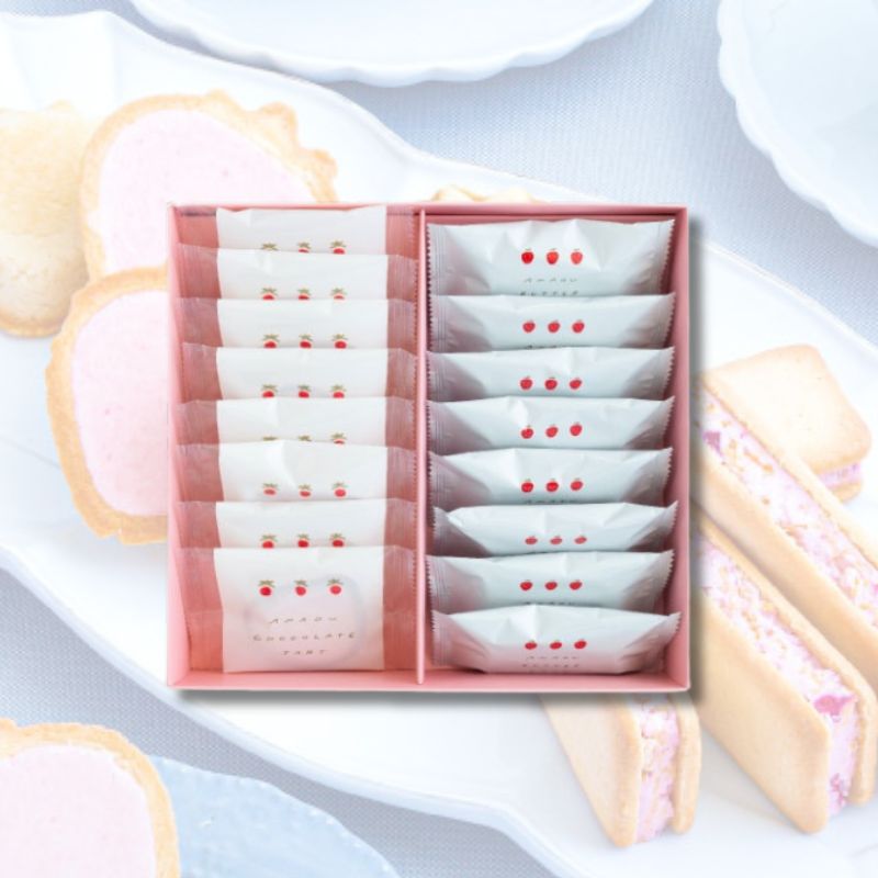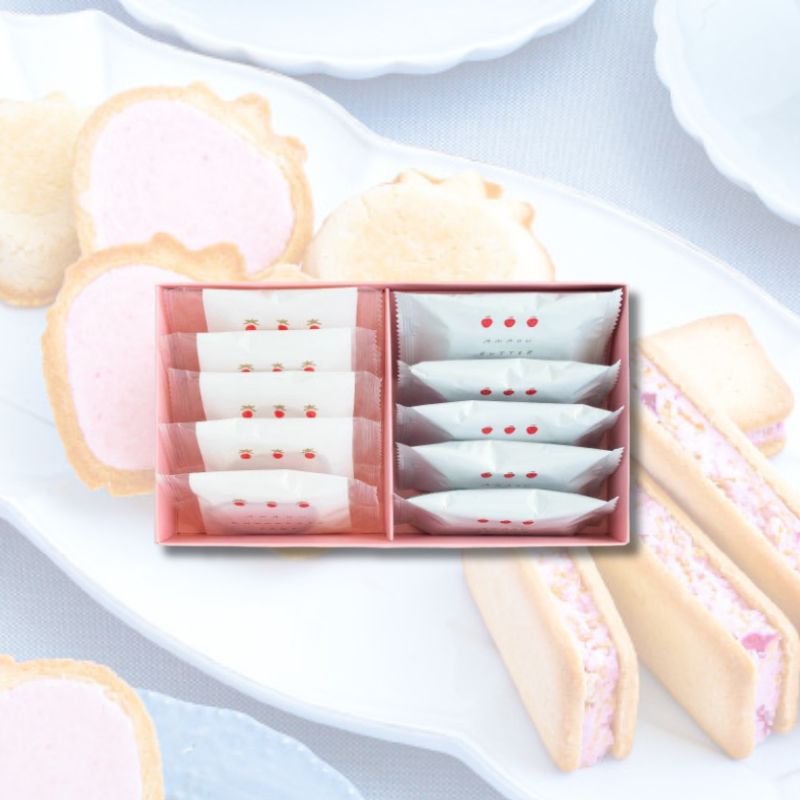 あまおうタルトクッキーとあまおうバターサンドの2種のギフトセットです。