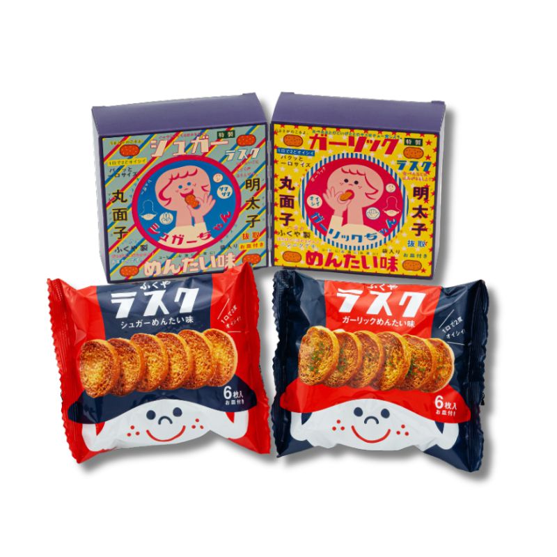 【ガーリックめんたい味】小麦粉(国内製造)、植物油脂、ショートニング、辛子明太子パウダー、砂糖、ガーリックパウダー、ごま油、パン酵母、食塩、ホエイパウダー、パセリ/調味料(アミノ酸等)、乳化剤、イーストフード、酸化防止剤(V.E)、V.C、(一部に小麦・乳成分・ごまを含む)