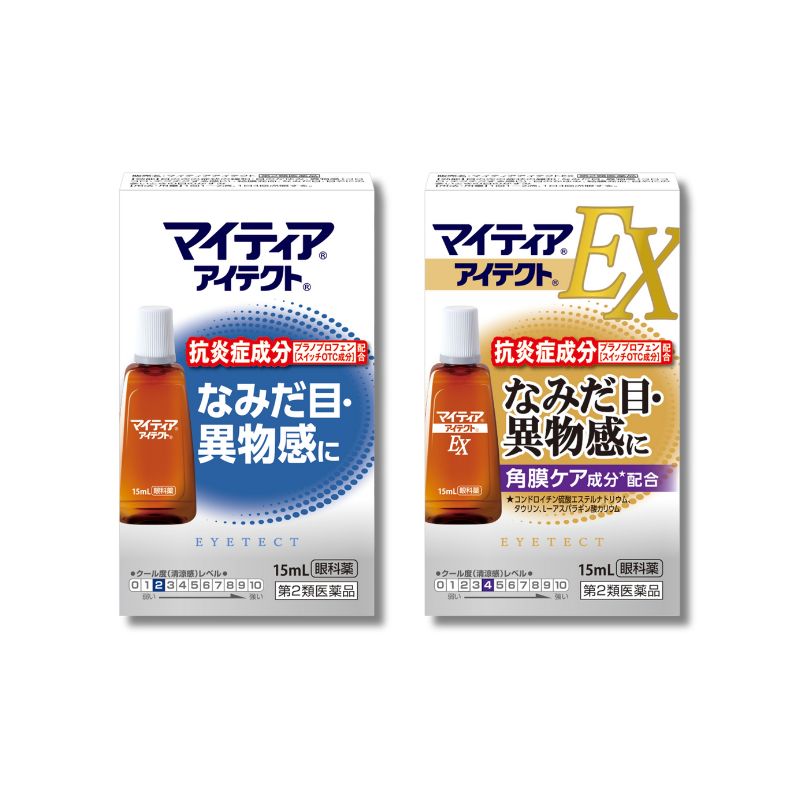 ●マイティアアイテクトは、抗炎症成分「プラノプロフェン」[スイッチOTC成分]を配合し、目の炎症から起こる「なみだ目、異物感(コロコロ・チクチクする感じ)、目のかゆみ、結膜充血」などの症状によく効きます。