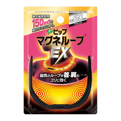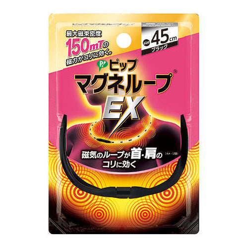 ピップマグネループは、磁気の力で筋肉組織の血行を改善して緊張をとき、コリをほぐす磁気治療器(管理医療機器)です。150ミリテスラの磁石を全体に4個、75ミリテスラの磁石を16個、合計20個の磁石を配置。粒状の磁石から磁気を放射。磁力がアップしたことで、より深いところまで到達します。