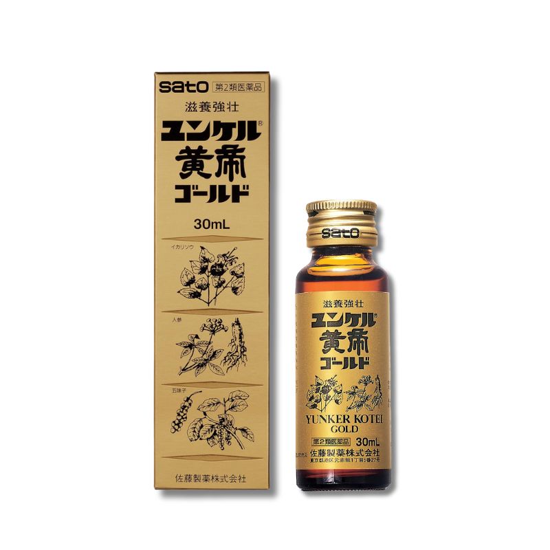 ユンケル黄帝ゴールドは、イカリソウ、ニンジン、ゴミシ、サンシュユ、肉じゅ蓉、反鼻の6種類の生薬にビタミンを配合したドリンクです。