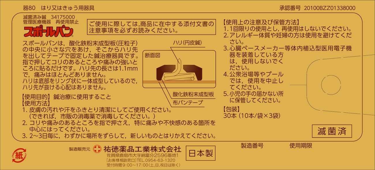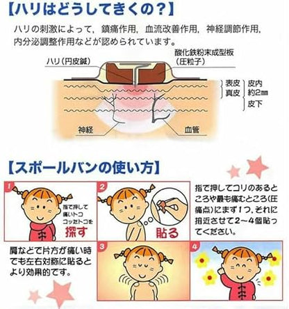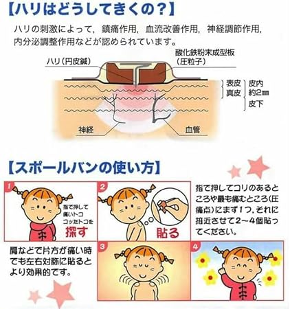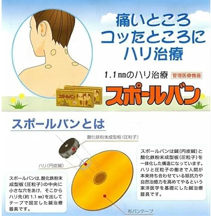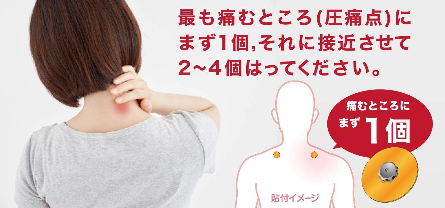 圧痛点に小さな酸化鉄粉末成型板をはりつけて圧刺激を加える方法です。