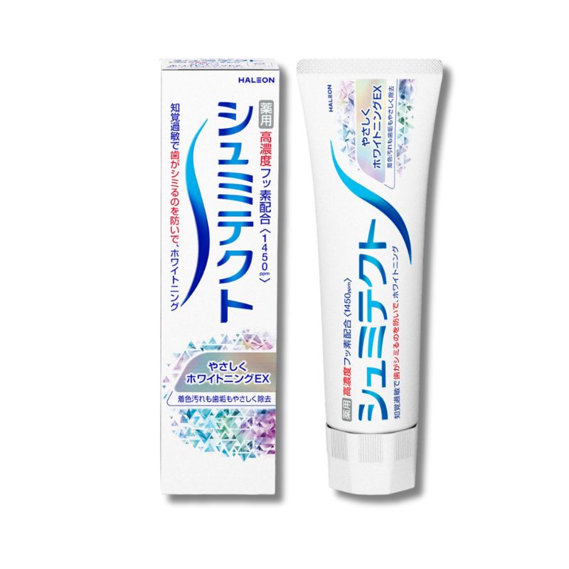 Combinando os ingredientes branqueadores duplos de alumina em grânulos finos (óxido de Al) e sílica dupla melhorada (silicato hidratado), remove eficazmente as manchas (descoloração), proporcionando um excelente efeito branqueador. Escovar os dentes 2 a 3 vezes por dia previne os sintomas de sensibilidade dentária e branqueia os dentes, sendo adequado para branqueamento de dentes sensíveis.