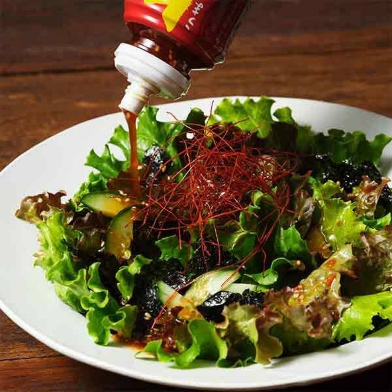 芝麻油和辣椒酱的风味为基础,融合了辣椒和大蒜的鲜美,是让人上瘾的万能调味料。只需淋在沙拉上,普通的蔬菜就能变身为韩式辣味蔬菜沙拉。这一瓶就能大大丰富您的餐桌选择。
